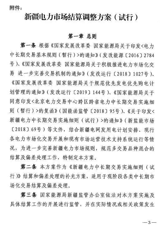 今日(7月3日),國(guó)家能源局新疆監(jiān)管辦印發(fā)《《新疆電力市場(chǎng)結(jié)算調(diào)整方案(試行)》的通知》,即日起實(shí)施。通知內(nèi)容如下: