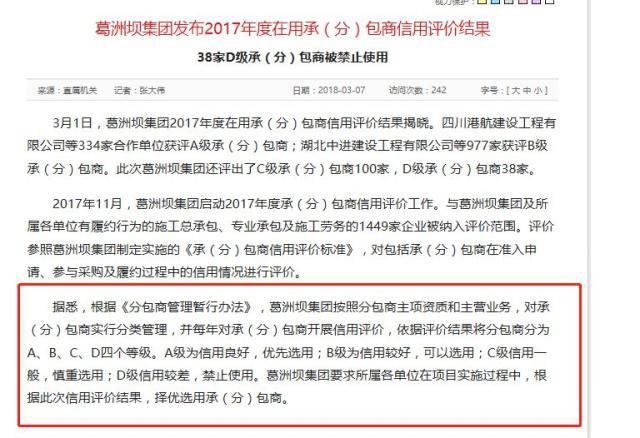 雖然否認(rèn)了違法分包,但葛洲壩在公告中表示,“作為總承包方,葛洲壩電力公司存在項目管理不善問題,主要包括分包履約過程管控不嚴(yán)、分包項目質(zhì)量監(jiān)測不到位等?!?