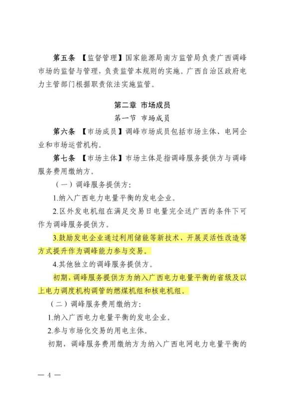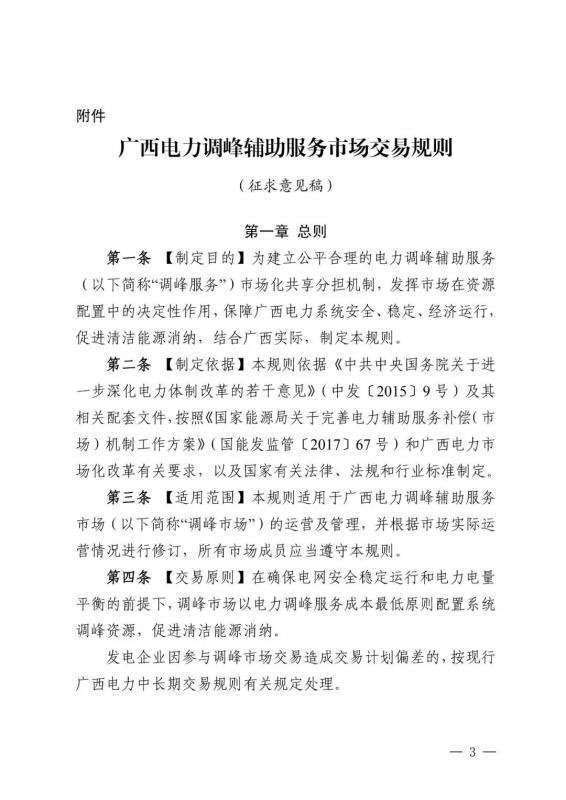 7月3日,南方能監(jiān)局印發(fā)《廣西電力調峰輔助服務交易規(guī)則(征求意見稿)》。文件規(guī)定,在市場開啟初期,調峰服務提供方為納入廣西電力電量平衡的省級及以上電力調度機構調管的燃煤機組和核電機組。