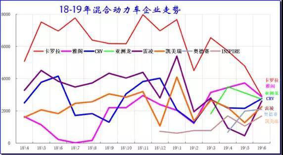 2019年6月份普通混合動力主力車型表現(xiàn)較差,本田的混動表現(xiàn)相對突出。