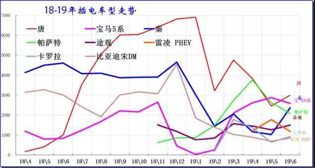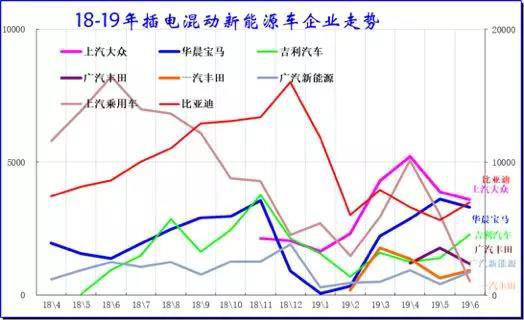 除了比亞迪超強外,2019年6月的上汽大眾和寶馬、吉利汽車成為插混的領(lǐng)軍企業(yè)。比亞迪的插混車型表現(xiàn)較好,但季節(jié)性波動仍有體現(xiàn)。
