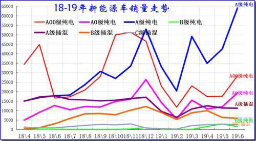 2019年主要是A級電動車的銷量波動巨大,A級車的大市場主要靠純電動拉動,A級插混表現(xiàn)一般。