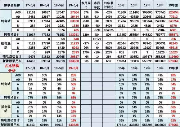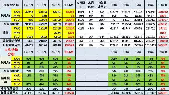 1. 2019年6月新能源汽車中純電動銷量占85%