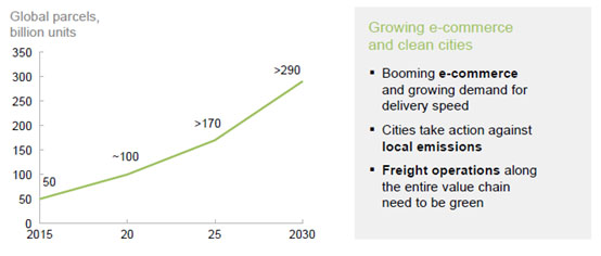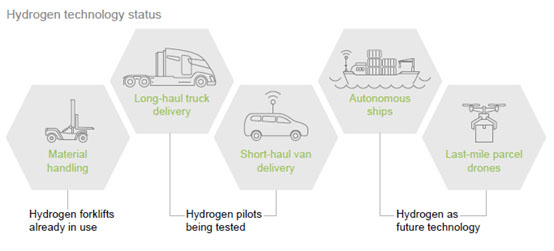 數(shù)字化貨運鏈。蓬勃發(fā)展的電子商務部門推動了貨運,我們預計所有商業(yè)運輸模式最終將轉向自動化。氫為整個貨運鏈提供了理想的能量載體——從叉車、長途卡車、短途貨車、自動船到最后一英里的無人機。到2030年,氫和燃料電池可以在全球范圍內為大約300萬至400萬輛運輸卡車和貨車提供燃料。