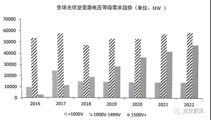 印度光伏逆變器市場以集中式為主,需求占比超過50%;美國市場則以組串式逆變器為主,40-60KW組串式逆變器需求占比超過50%;而從日本市場來看,30-40KW功率的組串式逆變器市場占比超過50%。歐洲市場同樣以組串式逆變器為主,30-40KW及60KW總占比超過60%。隨著直流I500V技術(shù)的成熟和市場接受度的提升,2018年1500V光伏逆變器被廣泛運(yùn)用于美國、印度和西班牙等國的大型地面電站中,預(yù)計未來將保持較高的增長趨勢。