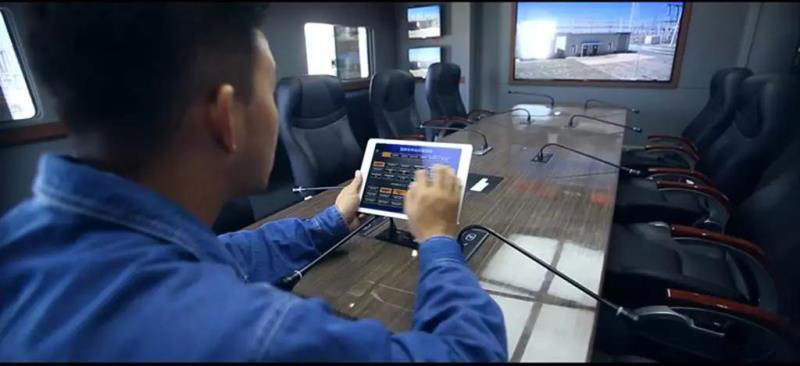 國(guó)網(wǎng)新疆電力員工利用移動(dòng)應(yīng)急指揮系統(tǒng)遠(yuǎn)程監(jiān)控指揮現(xiàn)場(chǎng)應(yīng)急搶修。(李江 攝)