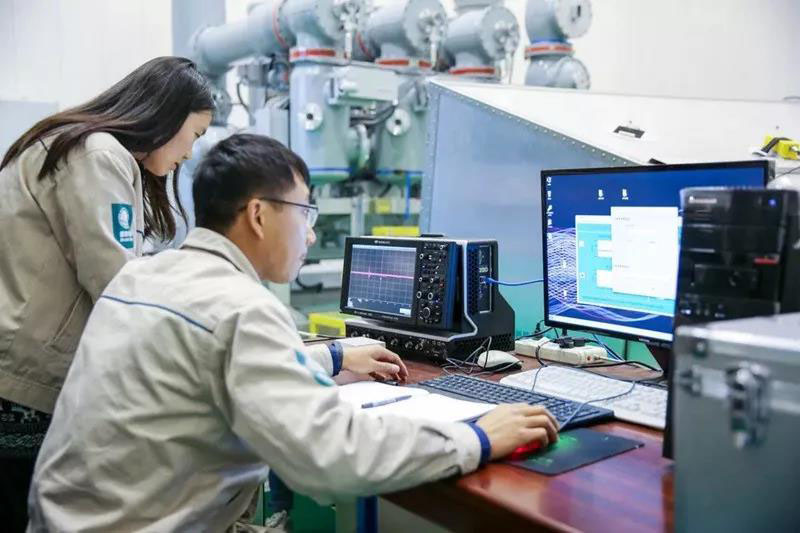 泛在電力物聯(lián)網(wǎng)智能感知實(shí)驗(yàn)室“特高頻局放感知裝置”體檢現(xiàn)場(chǎng)。(嚴(yán)石 攝)