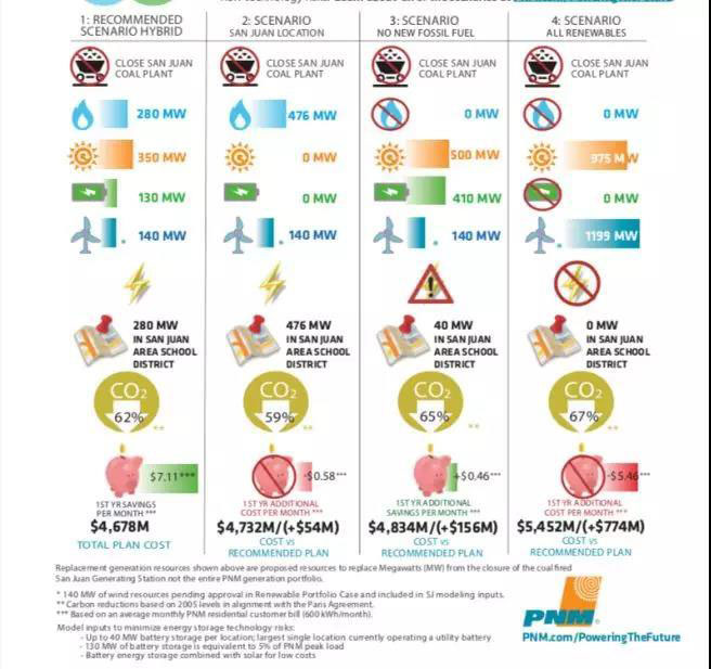 圖:PNM提出關(guān)停San Juan火電廠(chǎng)的四種替代方案