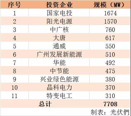 7月11日,國(guó)家能源局公布2019年光伏競(jìng)價(jià)補(bǔ)貼名單,意味著下半年國(guó)內(nèi)光伏市場(chǎng)正式啟動(dòng)。此次共計(jì)22.79GW光伏項(xiàng)目納入競(jìng)價(jià)補(bǔ)貼名單,光伏們通過(guò)整理名單項(xiàng)目的主要投資方,統(tǒng)計(jì)了入選規(guī)模排名前列的一些投資企業(yè)(見(jiàn)下表)。