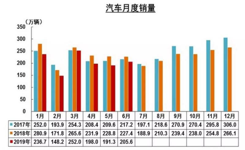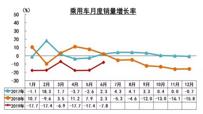 6月,乘用車產(chǎn)銷分別完成159.8萬輛和172.8萬輛,比上月分別增長7.2%和10.7%,比上年同期分別下降17.2%和7.8%,降幅略小于汽車總體。