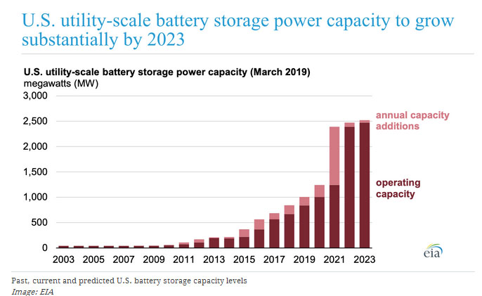 但這一數(shù)字即將發(fā)生巨大變化,因為美國能源部能源信息管理局(EIA)已發(fā)布一份報告,預計到2023年電池儲能系統(tǒng)的裝機容量將增加一倍以上,將達到2.5GW。