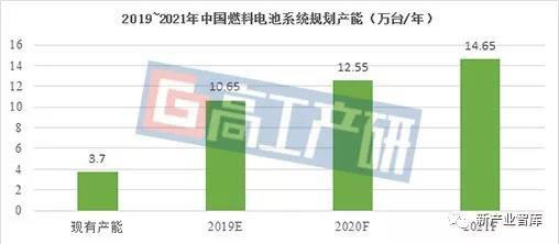 根據(jù)高工產(chǎn)研氫電研究所(GGII)統(tǒng)計,截至2019年6月,國內(nèi)氫燃料電池系統(tǒng)現(xiàn)有產(chǎn)能約為37000臺/年。根據(jù)各企業(yè)的發(fā)展規(guī)劃,GGII預(yù)計,2021年國內(nèi)氫燃料電池產(chǎn)能將達到14.65萬臺/年。