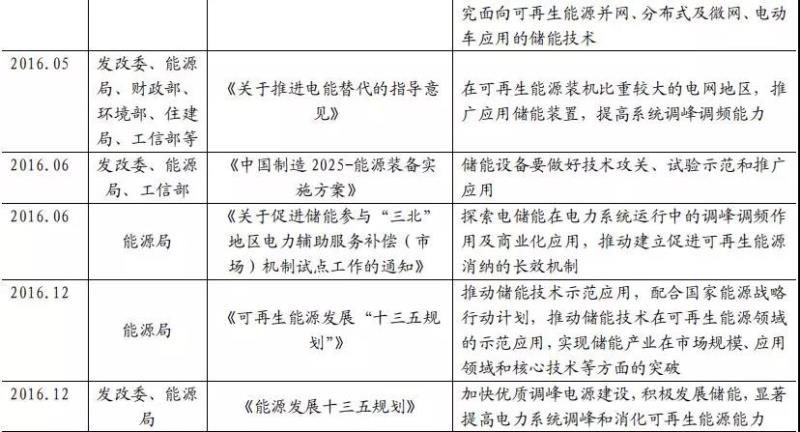 表 2:2016 年以來儲能扶持政策頻繁出臺