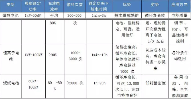 表1 儲能應(yīng)用場景廣泛,包括電網(wǎng)側(cè)、可再生能源并網(wǎng)、用戶側(cè)等方面