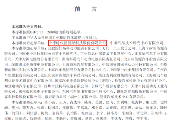 筆者在對(duì)比新舊兩版國(guó)標(biāo)時(shí),發(fā)現(xiàn)了一件有趣的事,那就是寧德時(shí)代在新國(guó)標(biāo)中從一眾起草單位里脫穎而出,成為和中汽研并列的負(fù)責(zé)起草單位。短短幾年時(shí)間,寧德時(shí)代已經(jīng)成為了行業(yè)的“帶頭大哥”。