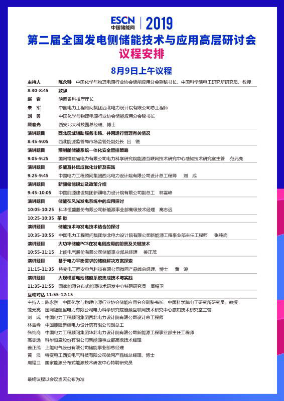 中國(guó)儲(chǔ)能網(wǎng)訊:為進(jìn)一步推進(jìn)儲(chǔ)能在發(fā)電側(cè)上的項(xiàng)目規(guī)劃、安全施工、系統(tǒng)集成技術(shù)應(yīng)用、運(yùn)營(yíng)模式、電網(wǎng)接入、標(biāo)準(zhǔn)體系、風(fēng)光儲(chǔ)電站考核機(jī)制、調(diào)度模式、儲(chǔ)能項(xiàng)目備案、審批流程和市場(chǎng)環(huán)境等方面展開(kāi)深入討論,中國(guó)化學(xué)與物理電源行業(yè)協(xié)會(huì)儲(chǔ)能應(yīng)用分會(huì)聯(lián)合全國(guó)微電網(wǎng)與分布式電源并網(wǎng)標(biāo)準(zhǔn)化技術(shù)委員會(huì)、中國(guó)電力工程顧問(wèn)集團(tuán)西北電力設(shè)計(jì)院有限公司、西安北大科技園、中國(guó)科學(xué)院電工研究所儲(chǔ)能技術(shù)組、深圳市科陸電子科技股份有限公司等單位聯(lián)合主辦“第二屆全國(guó)發(fā)電側(cè)儲(chǔ)能技術(shù)與應(yīng)用高層研討會(huì)”,現(xiàn)將有關(guān)議程通知如下:
