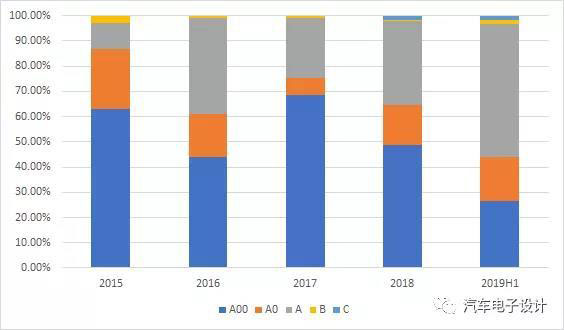 中國儲能網(wǎng)訊:從發(fā)展電動汽車開始,純電動 A00 級乘用車這一細分市場由于門檻比較低,發(fā)展一直很迅猛。在2019年的上半年,它在新能源乘用車中的占比繼續(xù)萎縮。6 月 A00 級純電動乘用車銷量為 2.78 萬輛,上半年累計銷量為 12.07 萬 輛,同比下降 23%。