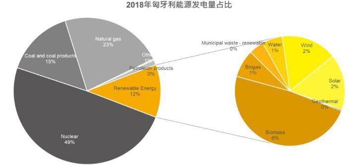 依據(jù)歐盟所制定的國家再生能源計劃2010-2020(Hungary’s Renewable Energy Action Plan For 2010-2020),匈牙利需于2020年實現(xiàn)14.65%的再生能源發(fā)電量占比,截至2018年年底,再生能源發(fā)電量已占匈牙利總發(fā)電量的12%。