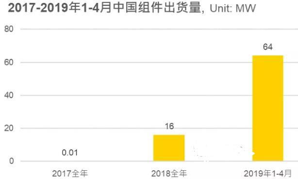 2019年一季度的組件出貨量已達到64MW,其組件需求可能大部分是用于KAT政策的剩余上網(wǎng)電價項目。