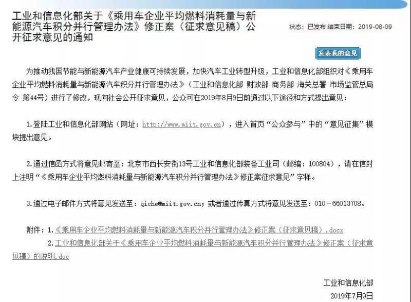 7月2日,根據(jù)《乘用車企業(yè)平均燃料消耗量與新能源汽車積分并行管理辦法》(簡稱“雙積分”政策)的要求,工信部等四部委聯(lián)合發(fā)布了2018年度“雙積分”核算情況,2018年度積分交易也隨之啟動;7月9日,工信部等四部委再次發(fā)布了“雙積分”政策修正案(征求意見稿),并向社會公開征求意見。