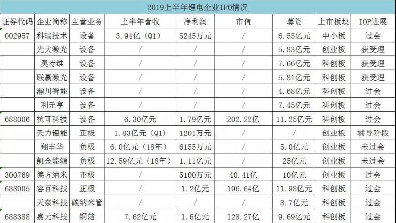 據(jù)高工鋰電網(wǎng)不完全統(tǒng)計,僅2019上半年就有14家鋰電企業(yè)沖刺IPO或過會,數(shù)量明顯增多,預(yù)計后期會有更多鋰電企走上IPO之路。