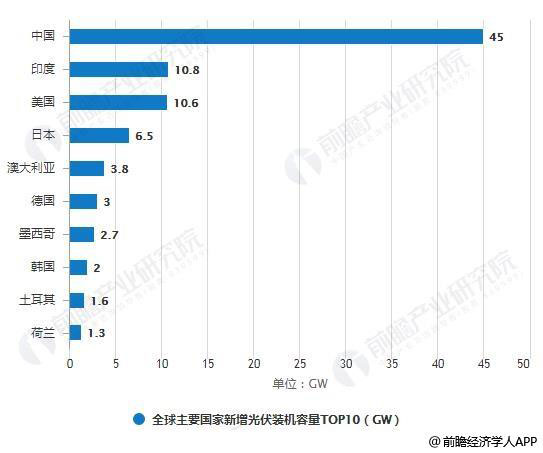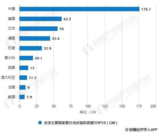 2018年全球主要國家光伏裝機(jī)容量TOP10統(tǒng)計情況