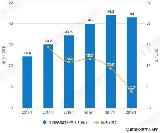 2013-2018年全球多晶硅產(chǎn)量統(tǒng)計及增長情況
