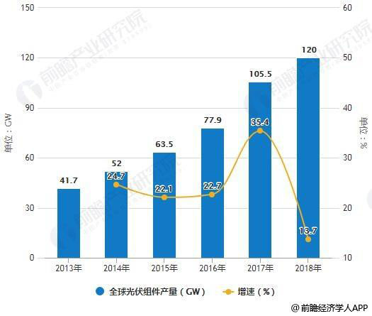 2013-2018年全球光伏組件產(chǎn)量統(tǒng)計及增長情況