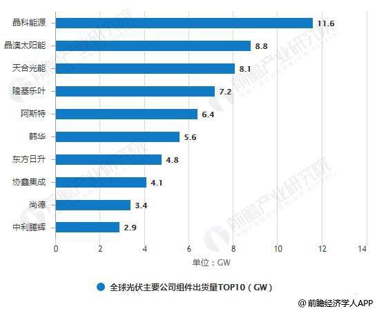 2018年全球光伏主要公司組件出貨量TOP10統(tǒng)計情況