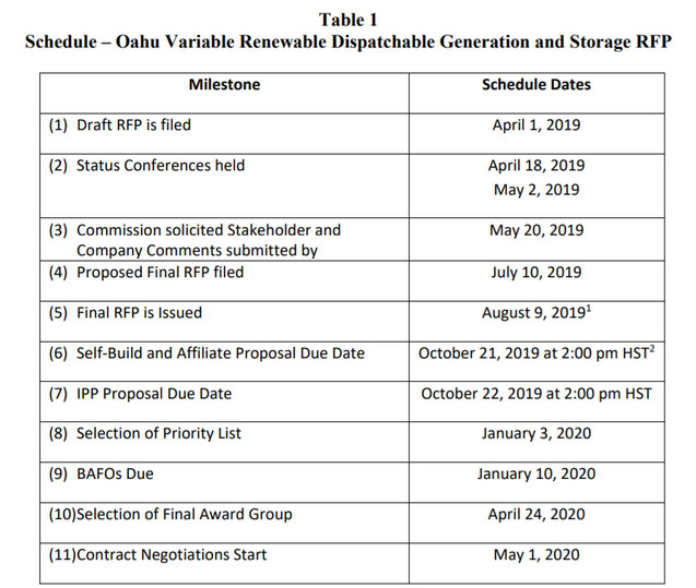 預(yù)計提出的草案(下圖是瓦胡島的需求建議書)將在8月9日之前確定是否批準(zhǔn),并且提案將于今年10月21日和22日到期。優(yōu)先項目的選擇將于明年1月3日提交,最終授標(biāo)將于2020年4月確定,隨后進行合同談判。