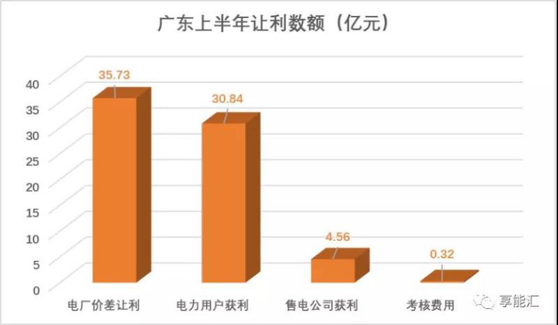 2019年上半年廣東電力市場(chǎng)電力用戶獲利30.84億元,占發(fā)電側(cè)總讓利的86.31%,度電價(jià)差為3.49分。