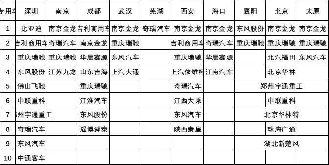 專用車企業(yè)數(shù)量眾多,主力企業(yè)參與并非很強(qiáng)。南京金龍和中通客車、重慶瑞馳等表現(xiàn)很強(qiáng)。