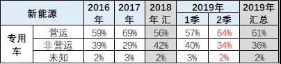 新能源專用車的非營(yíng)運(yùn)類占比逐步提升。2019年1-6月的非運(yùn)營(yíng)比例達(dá)到67%。
