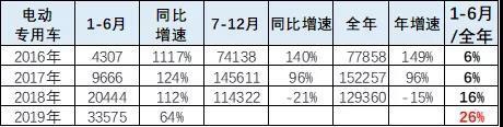 19年專用車走勢(shì)增長(zhǎng)較強(qiáng),18年的1-6月的銷量?jī)H有全年銷量的64%,但19年的年初銷量偏高,1-6月完成2018年全年銷量的26%,節(jié)奏相對(duì)強(qiáng)。