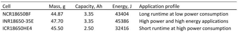 表1. 實(shí)驗(yàn)所用的三種NCA18650電池相關(guān)信息。
