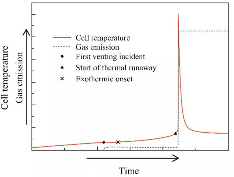 圖2. NCA 18650電池加熱熱失控概覽。