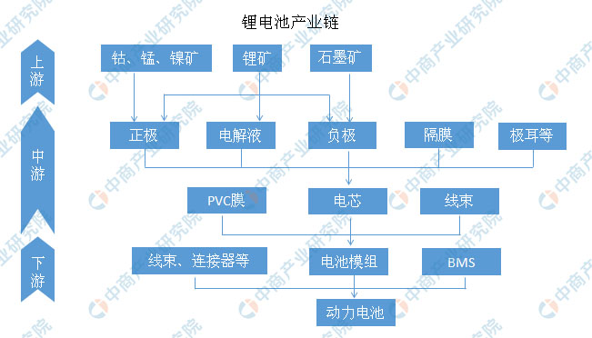 中國擁有豐富的鋰資源和完善的鋰電池產(chǎn)業(yè)鏈,以及龐大的基礎(chǔ)人才儲備,使中國大陸在鋰電池及其材料產(chǎn)業(yè)發(fā)展方面,成為全球最具吸引力的地區(qū),并且已經(jīng)成為全球最大的鋰電池材料和電池生產(chǎn)基地。鋰電池產(chǎn)業(yè)鏈上游包括鈷、錳、鎳礦,鋰礦,石墨礦。在鋰電池制造產(chǎn)業(yè)鏈中,電池包的制造核心部分就是電芯,電芯封裝后再集成線束和PVC膜構(gòu)成電池模組,再加入線束連接器、BMS電路板構(gòu)成動力電池成品。