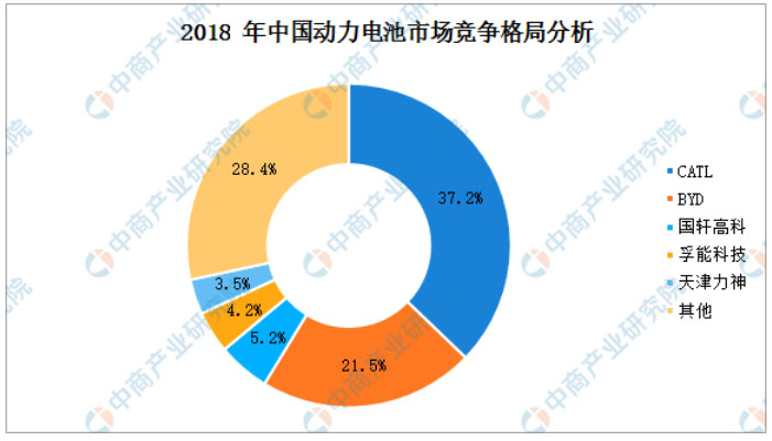 中國鋰離子電池市場保持著高速增長,主要受動力電池市場高速增長帶動。2018年中國動力電池市場前五大企業(yè)產(chǎn)值占比達(dá)71.60%,市場集中度進(jìn)一步提升。