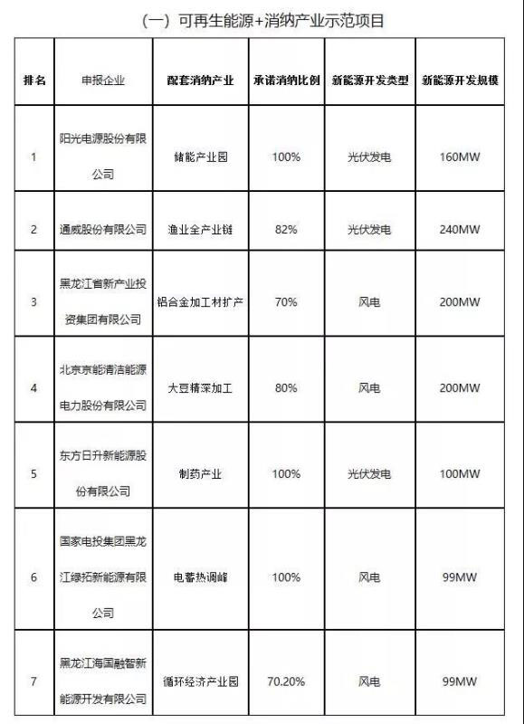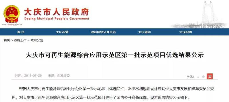 今日,黑龍江大慶市可再生能源綜合應(yīng)用示范區(qū)第一批示范項(xiàng)目?jī)?yōu)選結(jié)果,已在大慶市人民政府官網(wǎng)上公示。通威、陽(yáng)光、京能、東方日升、國(guó)家電投、華能等8家單位中標(biāo)。