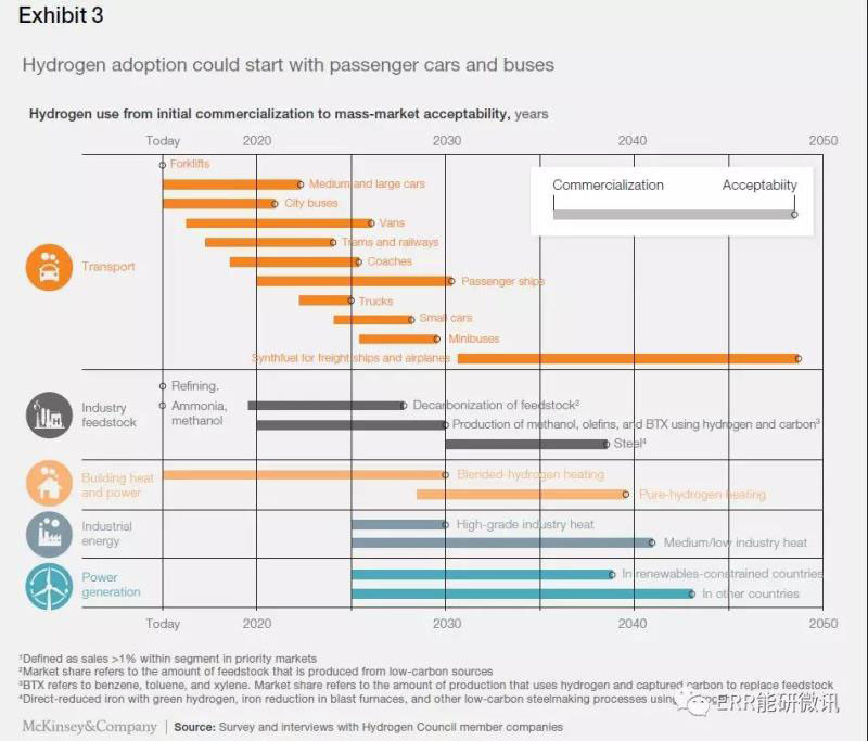 圖3 氫氣的采用可以從乘用車和公共汽車開始