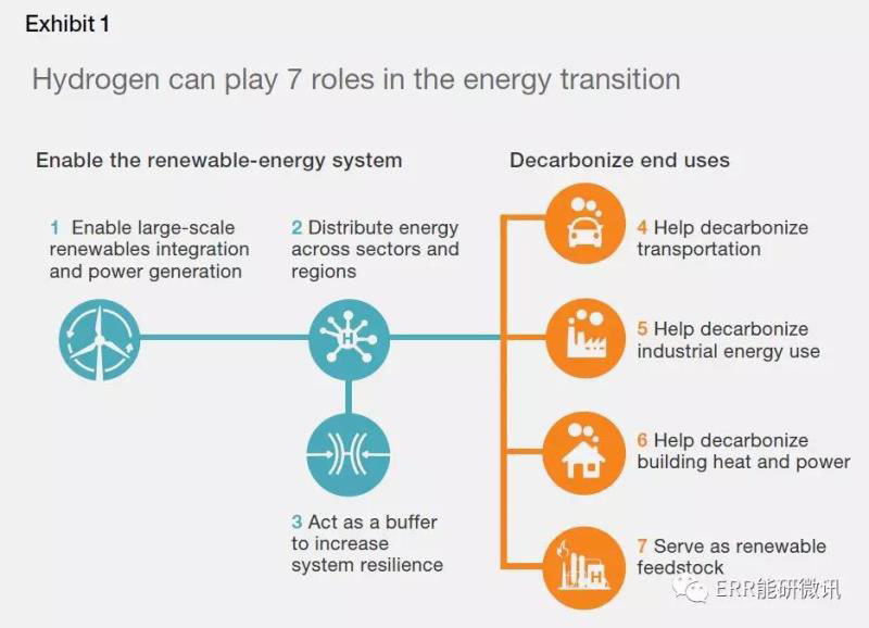 氫在能源轉(zhuǎn)型中可以起到7個(gè)主要作用