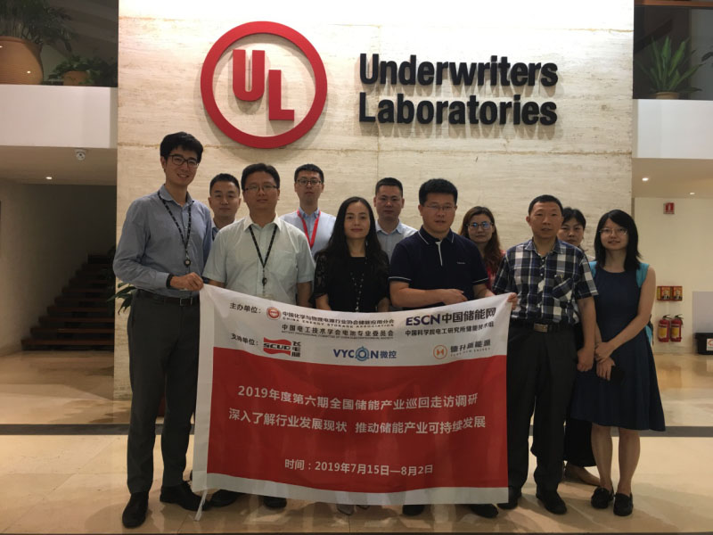 2019年7月26日,由中國化學(xué)與物理電源行業(yè)協(xié)會儲能應(yīng)用分會、中國電工技術(shù)學(xué)會電池專業(yè)委員會、中國科學(xué)院電工研究所儲能技術(shù)組和中國儲能網(wǎng)聯(lián)合組織的“第六期中國儲能產(chǎn)業(yè)巡回走訪調(diào)研團(tuán)”走進(jìn)UL廣州實(shí)驗(yàn)室,UL廣州分公司總經(jīng)理Jessie Liu、廣州實(shí)驗(yàn)室經(jīng)理Raymond Shen、儲能戰(zhàn)略與業(yè)務(wù)主管Nethan Zhang、資深電池項(xiàng)目工程師Benjamin Liu等接待了調(diào)研團(tuán)一行。