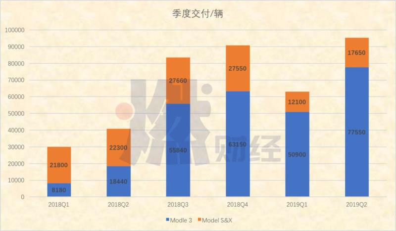 這一次,馬斯克沒有食言。7月3日,特斯拉披露其Q2交付情況。數(shù)據(jù)顯示,Q2季度交付量總計(jì)9.5萬臺,超過去年第四季度的9.06萬輛,其中Model 3的交付量達(dá)到了7.755萬臺,占交付量的80%以上。
