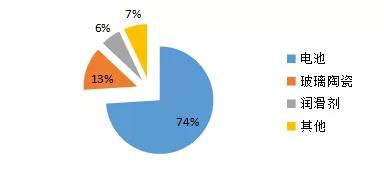 鋰電池產(chǎn)業(yè)的快速發(fā)展,致中國已成為目前世界第一的鋰消費大國,幾乎占用了全球每年40%的原鋰資源產(chǎn)量,為此需大量進口。中國碳酸鋰消費市場的結(jié)構(gòu)與全球市場差別較大,電池領(lǐng)域的應(yīng)用占據(jù)70%以上市場。