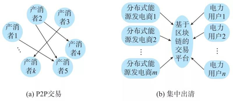 圖1 點對點交易模式和集中出清模式