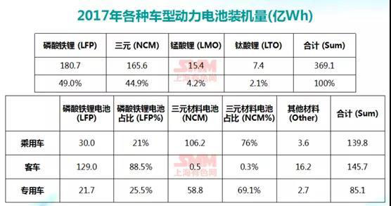鈦酸鋰電池: 裝機(jī)量為5.2億wh,占總裝機(jī)量 0.9%;主要作為快充電池應(yīng)用在新能源客車(chē)上 。