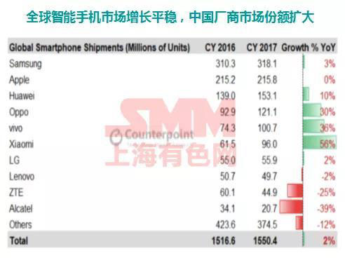 全球智能手機(jī)市場(chǎng)增長(zhǎng)平穩(wěn),中國(guó)廠(chǎng)商市場(chǎng)份額擴(kuò)大