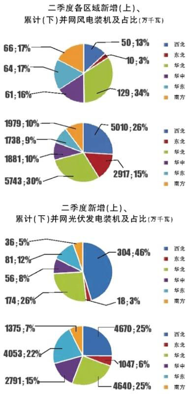 風(fēng)電開發(fā)布局持續(xù)優(yōu)化。截至6月底,中東部和南方地區(qū)合計裝機5598萬千瓦,占全國累計風(fēng)電裝機比重與上季度相比提升0.5個百分點至29.1%,同比提高2.5個百分點,風(fēng)電開發(fā)重心持續(xù)向消納條件較好的地區(qū)轉(zhuǎn)移,建設(shè)布局持續(xù)優(yōu)化。二季度,中東部和南方地區(qū)新增風(fēng)電并網(wǎng)裝機191萬千瓦,占全國的50.2%。