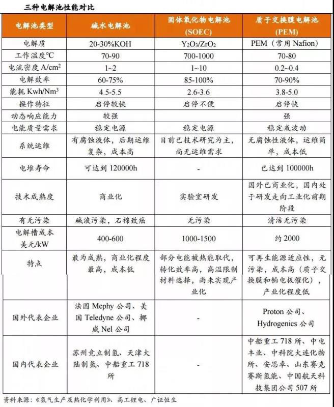目前主流的電解水制氫技術(shù)有三種類型:包括堿性電解水制氫、質(zhì)子交換膜電解水(PEM)制氫和固態(tài)氧化物電解水(SOEC)制氫.