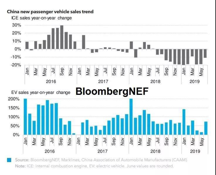今日市場:2019年上半年,中國新能源汽車銷量達56萬,比去年同期增長了55%。新能源汽車占乘用車銷量的5.5%。雖然新能源汽車銷量增長迅速,但仍未能填補燃油車銷量下滑的缺口。去年6月以來,中國的燃油車銷量逐月下降,比去年上半年下降了16%。銷量下滑主要是因為經(jīng)濟增速放緩、貿(mào)易關(guān)系緊張和消費者偏好的變化。